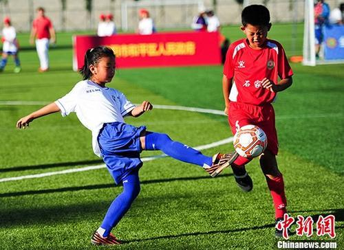 今年7月,2017年全国青少年校园足球夏令营小学组第一营区在沈阳进行。中新社记者 于海洋摄