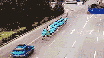 14日中午,一段视频在网络上热传,80多名佩戴反光条的暴走团队员在道路上暴走,他们跟随着节奏感强烈的音乐,迈着统一的步伐快速行进,部分跟不上的队员则小跑前行,其中一些人手中还拿着荧光棒挥舞。从视频中可以看到,队员暴走时天色已经彻底黑了下来,暴走团行进的位置在道路的机动车道上,部分队员还踩踏到了道路中间的白色实线,而在道路上,不时会有汽车或者电动车驶过。