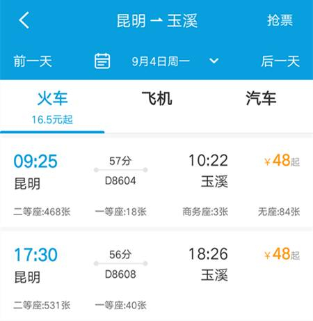 与此同时,9月4日还将开行昆明—玉溪动车组列车。每天2个车次,运行时间57分钟。一等座76元,二等座48元。