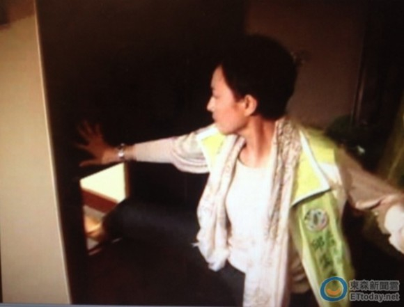 邱议莹踹门。(图片来源:台湾“东森新闻云”)