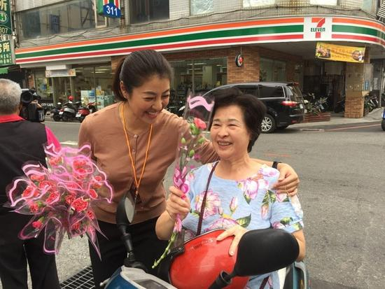 许淑华(左)亲和力十足,在南投县的街头常有支持者趋前致意。(图片取自台湾《联合报》)