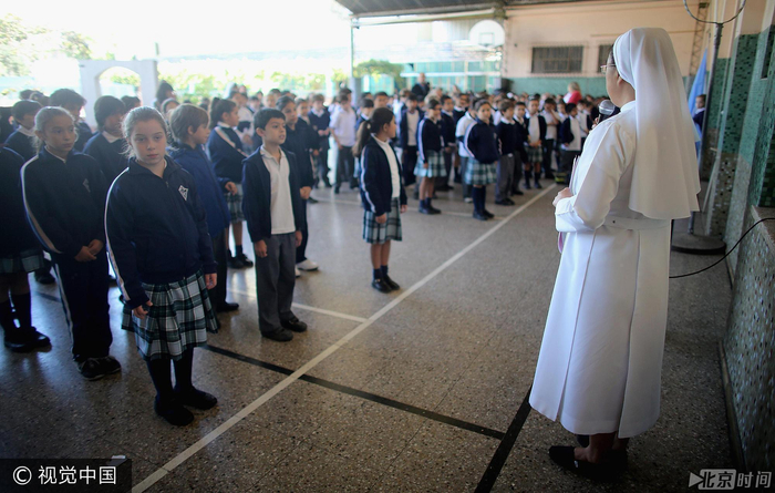 当地时间2013年3月18日,阿根廷布宜诺斯艾利斯,天主教学校的学生集会。