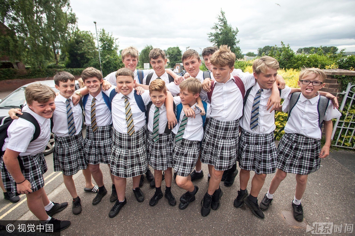 当地时间2017年6月22日,英国近日天气炎热,气温一度冲高到摄氏35.6度。 虽然天气酷热,但德文郡艾希特市(Exeter)的一所中学却明令禁止男学生穿着短裤上学。当中有大约50名男学生后来“乖乖听从校方建议”,果然不穿短裤,但是,却改穿女生裙子上学。