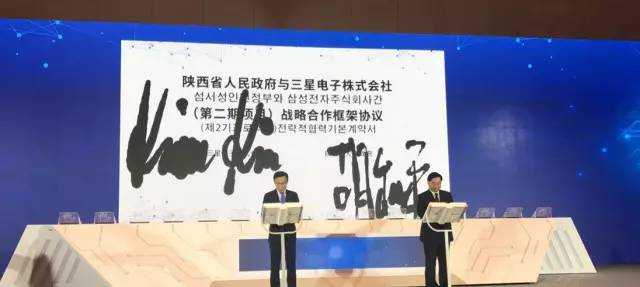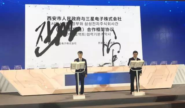 |西安市市长上官吉庆与三星电子存储器事业部负责人秦教英副社长签署《西安市人民政府与三星电子株式会社(第二期项目)合作框架协议》