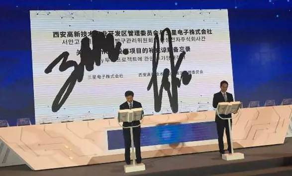 |西安高新区管委会杨仁华主任与三星电子非终端事业部企划部门负责人姜昌贞专务,签署《西安高新技术产业开发区管理委员会与三星电子株式会社关于Memory投资项目的补充谅解备忘录》