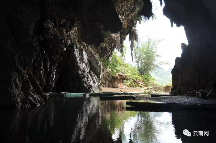 坝美村位于文山州广南县北部八达乡和阿科乡交界处,村里人进出村子必坐船穿过溶洞,出得洞口,眼前土地平旷,屋舍俨然,门前是宽阔的田野、屋后有青翠修竹。