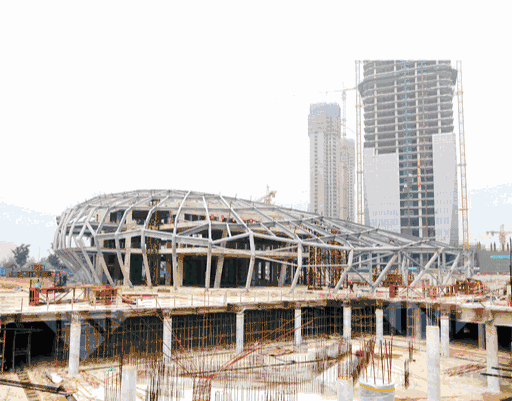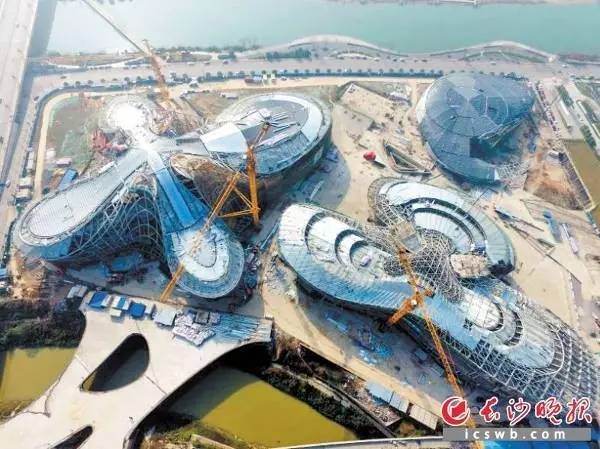 ↑2015年11月9日,梅溪湖文化艺术中心钢结构已经全部完工,“芙蓉花瓣”雏形初现,将开始进行幕墙及舞台机械的施工。 长沙晚报记者 李锋 摄