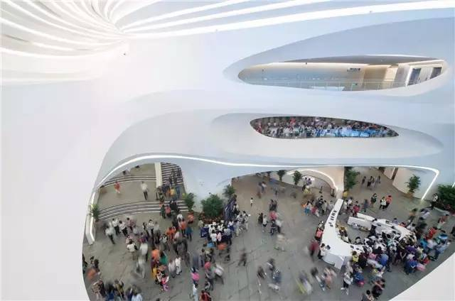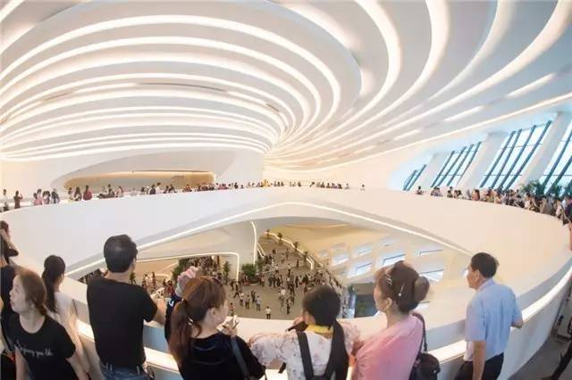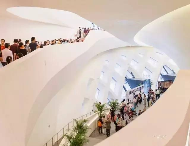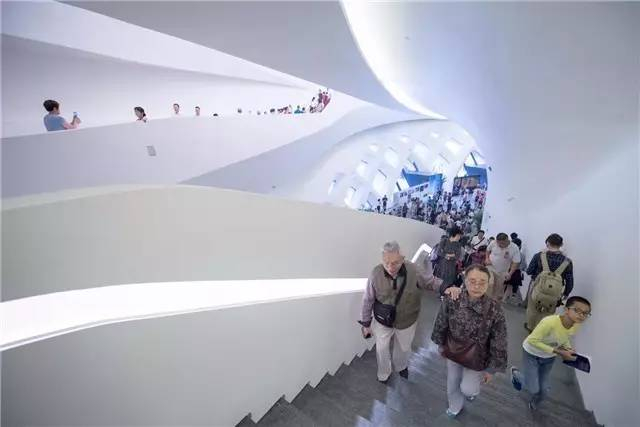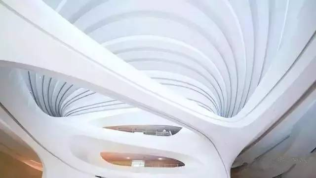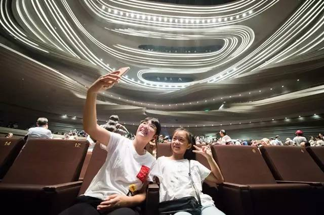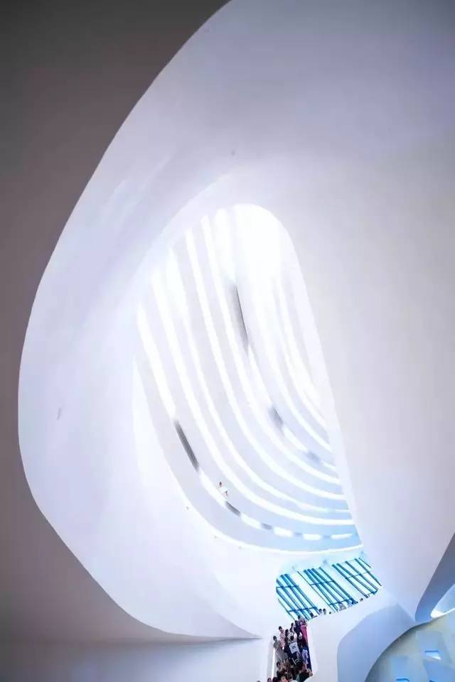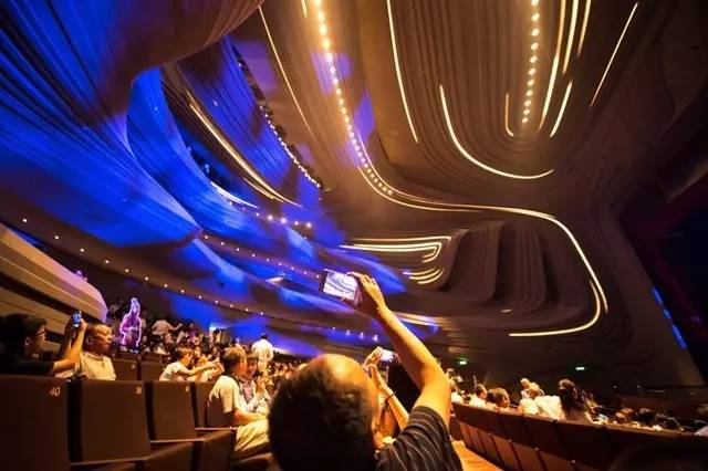走进大剧院,记者就为建筑师扎哈·哈迪德的艺术理念所折服。在一般人的理解里,建筑的梁是横的、柱是竖的、墙是平的、地面也是平的。但梅溪湖大剧院的墙面是镂空和内倾的,楼梯也好像墨比乌斯环,平缓而悠长,顶棚上的水波纹式装饰线条,仿佛呈现出笛卡尔心形曲线的美……(嗯,小编在呓语