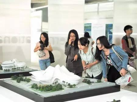 ↑2014年10月12日,梅溪湖国际建筑展中,市民朋友正用心地感受着时尚大气的建筑设计。长沙晚报记者 邹麟 摄