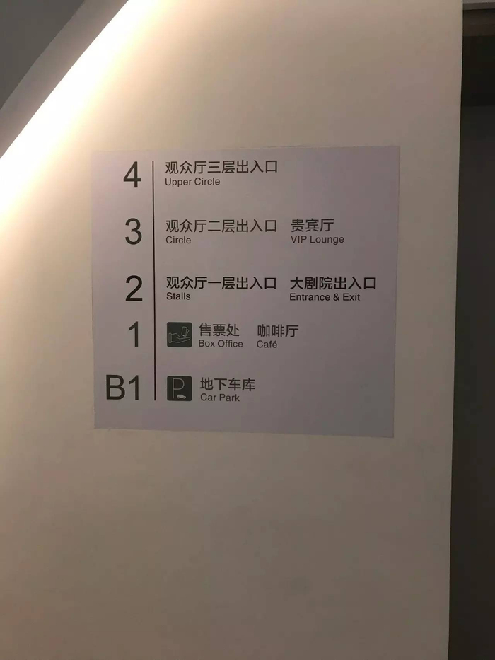 据电梯处导览牌介绍,大剧院一共有5层,地下1层,地上4层。