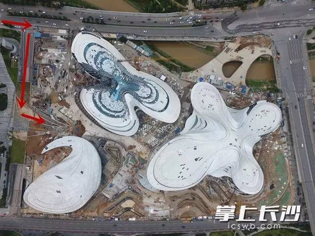 ↑2016年3月24日,从高空中俯瞰,正在安装外立面幕墙的长沙梅溪湖国际文化艺术中心大剧院,好似一朵初绽的芙蓉花。长沙晚报记者 邹麟 摄