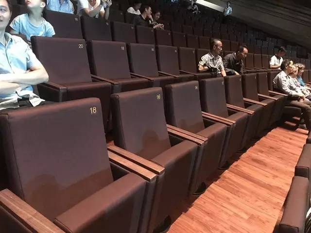 记者发现,大剧院内部的座椅呈暗红色,面料为麻类纺织品,其与电影院座椅相比,空间较大,但靠背较硬,且没有饮料放置槽(吃货们,大剧院内部禁止饮食啦!)