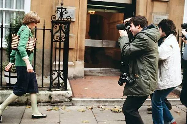 与王室订婚的消息公布后,戴安娜在伦敦遇到狗仔跟拍