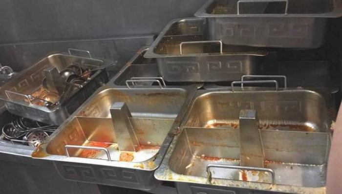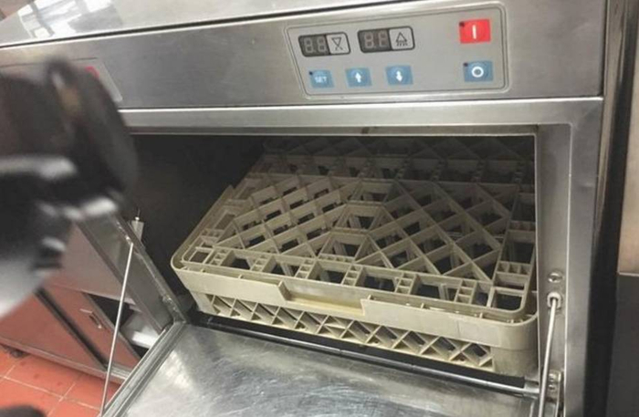▲ 2017年6月18日凌晨4点20分于洗碗间拍摄,洗碗机蓄水池内沾满是油污和食物产渣。
