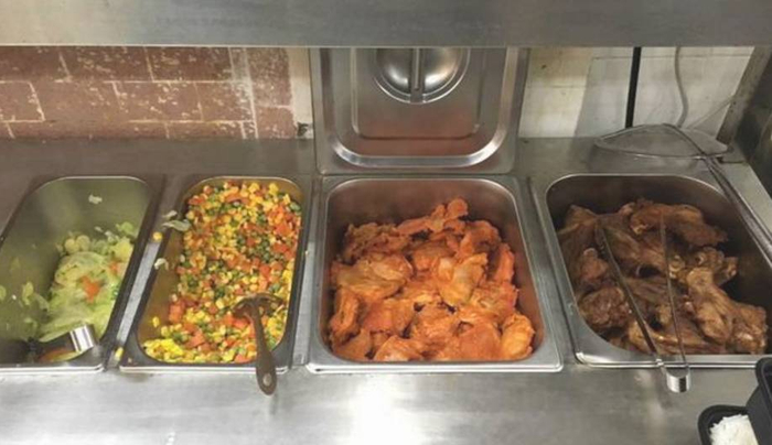 配餐区,即食菜品已经在外放置超过两小时,且室内没有空调,温度较高。这是不符合食品安全相关要求的。执法人员要求对这些菜品进行微生物抽检。