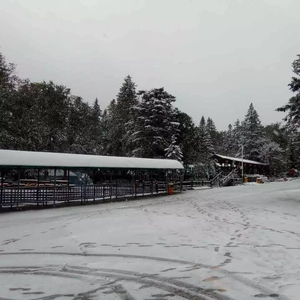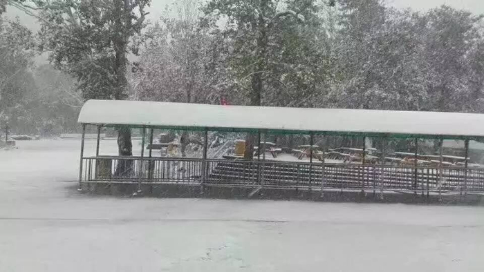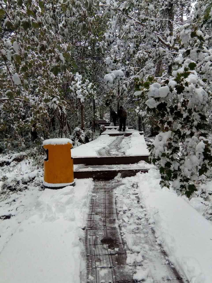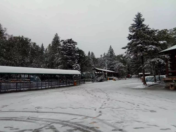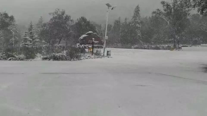 生活报记者了解到,除了凤凰山迎来降雪,中国最冷小镇——位于大兴安岭的呼中区也在28日迎来了首场降雪,整座小城都笼罩银装素裹中,这场降雪也让白山风景区、苍山石林景区被白雪覆盖,成为了秋季难得一见的风景线。其中白山风景区降雪厚度达到7厘米,在雪花的映衬下,景区内绿树配白雪,分外妖娆。