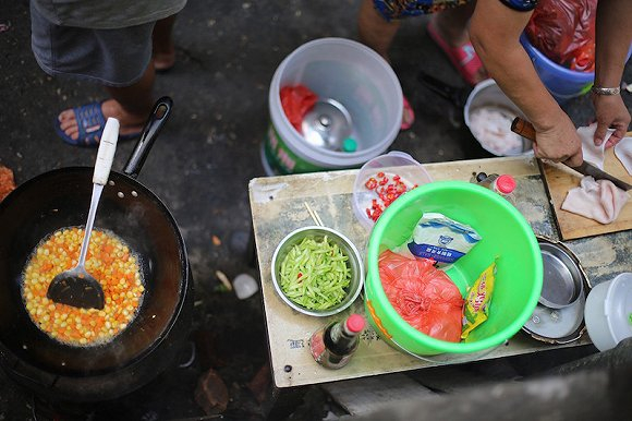 五下午2点,家属们渐渐散去,熊庚香开始做午饭。两天来,他们的主菜都是青椒炒肉——青椒价廉,三块钱能买七八个。猪肉最近也便宜,一斤不到8元。她再炒个空心菜,一顿饭的成本不超过20元。