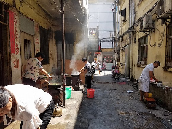 万佐成和熊庚香招呼家属们到前面一条巷子做饭。他们租下前面巷子里一楼一个20平方米的房间,用做厨房,把炉子摆在屋里和楼梯拐角。人们在煤炉前排起了长队。