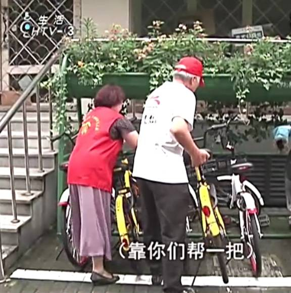 在拱墅区的半道红社区有一支上百人的志愿者队伍,是由社区里一些退休的大伯大妈组成。每天早晚各一班,两三个人,沿街走走看看,哪些网租自行车没有放好,就上前扶一把。