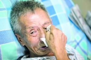 病床上的王学忠说到伤心处抹起眼泪。