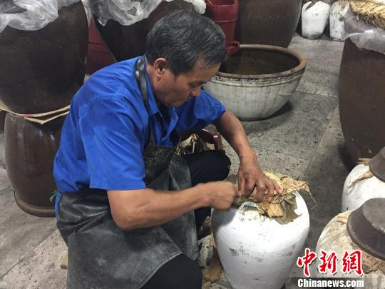 资深古法酿酒师张米良正在封坛 毛维佳 摄