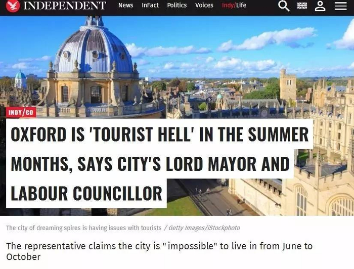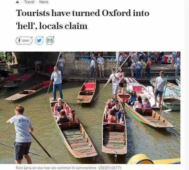 英国《每日电讯报》报道称,“牛津的居民认为游客正在把那里变成地狱”,过多的游客让当地人失去了过去安静惬意的校园环境,如今那里变得嘈杂不堪。