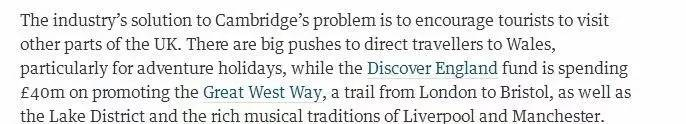 报道称,剑桥每年要接待550万名游客,其中来自北美的游客增长了22%,来自中国、日本、澳大利亚和中东的游客增长了25%。