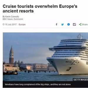 BBC报道称,满载游客的邮轮让欧洲传统景点过载不堪。除了威尼斯民众一直以来的抱怨,有更多的地方加入了反对过多游客的阵营。