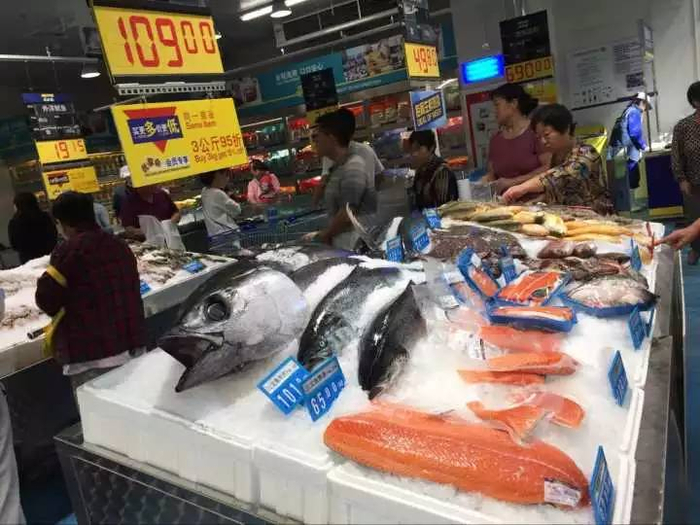 也就是说,麦德龙在丹麦买了一个岛,专门用来养三文鱼,然后全程冷链运输过来,绝对新鲜无比!