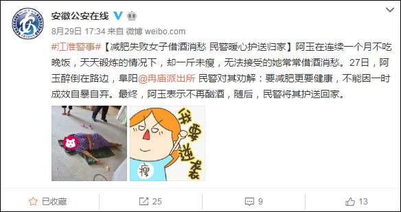 阿玉在连续一个月不吃晚饭,天天锻炼的情况下,却一斤未瘦,无法接受的她常常借酒消愁。27日,阿玉醉倒在路边,阜阳@冉庙派出所 民警对其劝解:要减肥更要健康,不能因一时成效自暴自弃。最终,阿玉表示不再酗酒,随后,民警将其护送回家。
