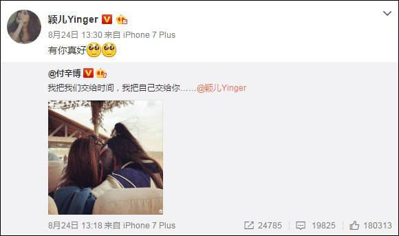 不仅接了新戏,也收获了恋情,前两天在微博公开了和付辛博的恋情,可以说是人生赢家了……