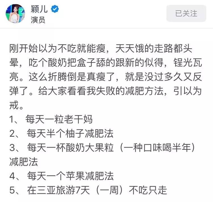 前段时间,演员颖儿在知乎回答问题,讲述她是怎么从140斤瘦到90斤的。