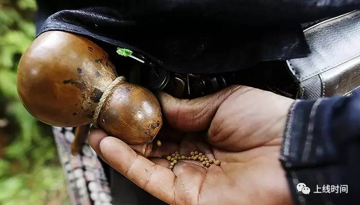 ▲葫芦里倒出来的正是岜沙男子配枪的弹药。视觉中国