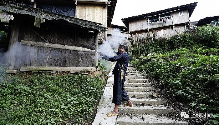 ▲ 尽管岜沙男子终身带枪,但从不乱开枪。告别狩猎后的岜沙人以农业为主,因此他们只有在迎接贵宾和有重要庆典活动时,才会对天鸣枪。视觉中国