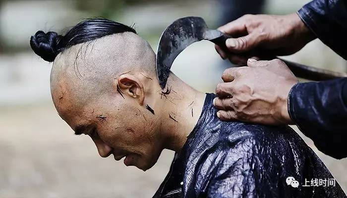 ▲岜沙的男性们非常重视他们的发髻。发髻在岜沙苗语中称为“户棍”,是男性装束中最重的标志。剃掉大部分头发,仅保留头顶中间一小撮头发并挽成一个小鬏鬏。岜沙男性终生保持这种发式,而这种发髻也是迄今为止在中国能见到的最古老的男性发式。至今为止,岜沙的男人们还是用镰刀剃头。视觉中国