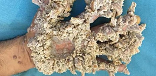 巴勒斯坦男子患罕见“树人症”, 皮肤肿起如树皮。