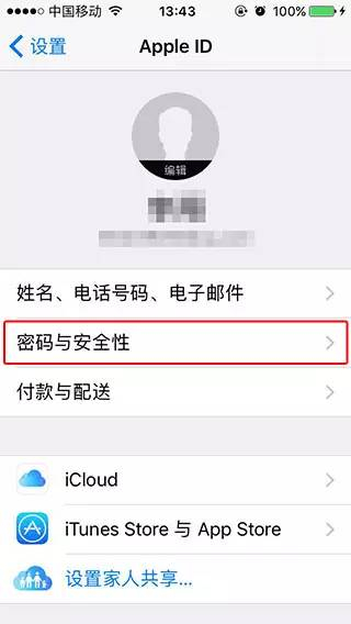 (1)在手机中【设置】--点击自己的Apple ID ;