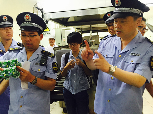 9月1日,上海市食药监局长杨劲松带队检查学校盒饭生产企业——上海绿捷实业发展有限公司。