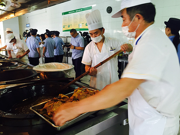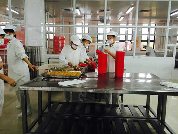 检查现场,杨劲松详细询问寒暑假期间,公司怎么保证员工待遇,如何做好培训。所有出场盒饭,打包好后,再次微波加热至75摄氏度,杜绝细菌滋生。