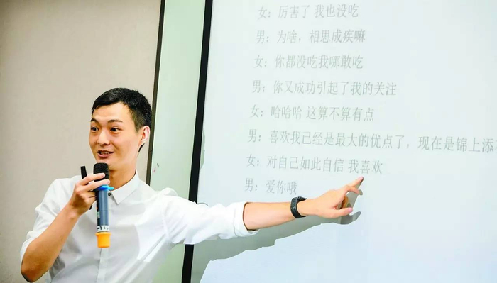 吴剑说,一名学员购买了服务后,团队首先会对这个学员的形象进行评估和改造,如发型、穿衣、佩戴的首饰等,连同学员在社交软件上使用的头像,发布的照片等,让学员展示出积极、健康的一面。然后,他们会进一步指导学员的聊天技巧,包括与认识异性的方式、成为朋友后聊天的内容等,避免一些会让对方反感的错误。接下来,还有约会的技巧、表白的方式,经营感情需要注意的细节等课程。吴剑说,一般两三个月,学员就能结束学习课程,但是在与异性交往中碰到一些问题,他们也会求助讲师。