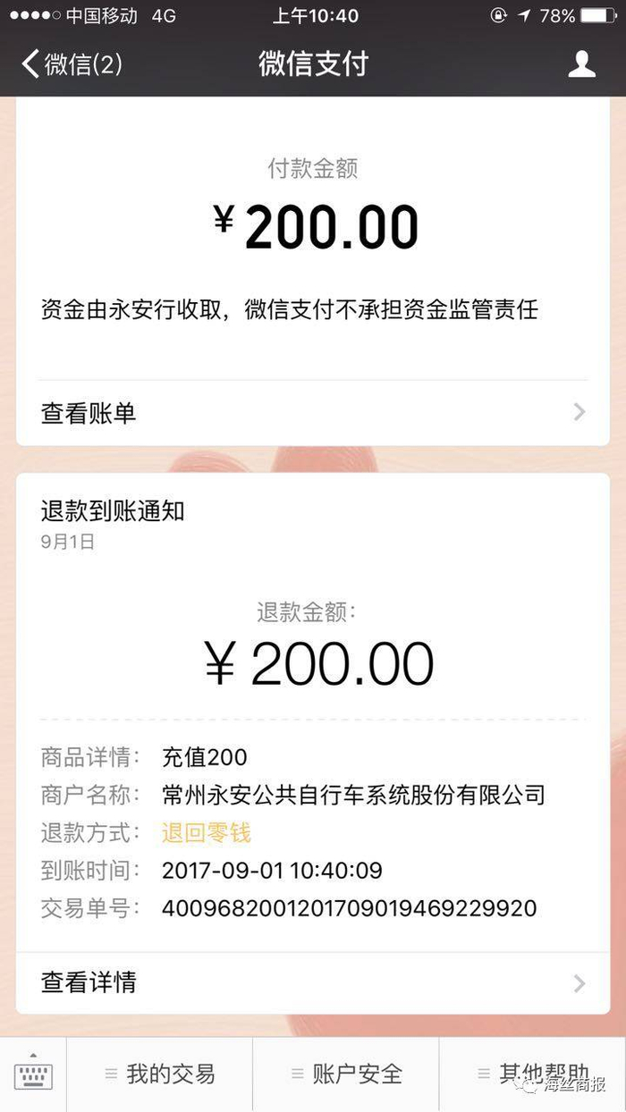 那若是还车后,200元押金能及时到位吗?记者还车成功后,点击“我的余额”页面中,选择“退款”,200元及时回到微信钱包上哦,十分方便。