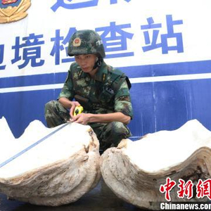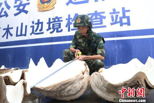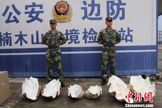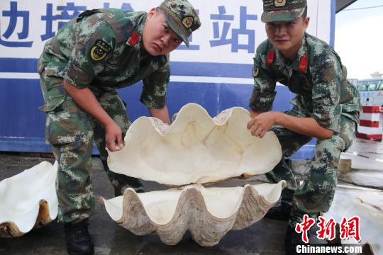 中新网防城港9月1日电(张振国 蒋焕彬)广西防城港市公安边防支队楠木山边境检查站1日介绍,该站日前查获国家一级保护动物砗磲标本3只,最大一只重约100公斤,最小一只重约50公斤,总重218公斤。