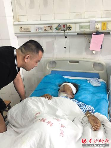 胡先生细心照顾受伤的老人。长沙晚报通讯员 李小雷 摄