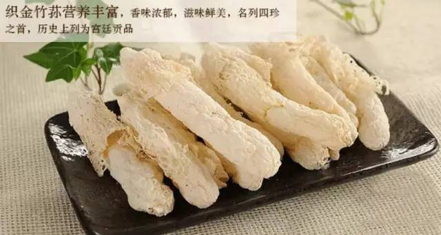 竹荪原系野生植物,因为生长条件相当苛刻,成长不易,得之更难,历史被认为是珍奇稀罕之物,作为南方贡品,它具有延长汤羹等食品存放时间、保持菜肴鲜味不腐不馊的奇特功能,一向被帝王列为御膳,现在则是国宴中不可缺少的一味山珍。