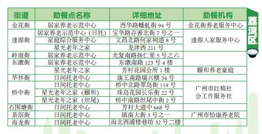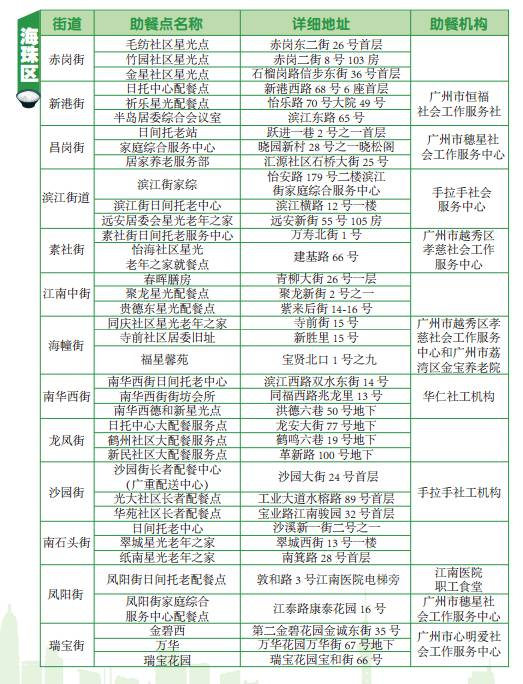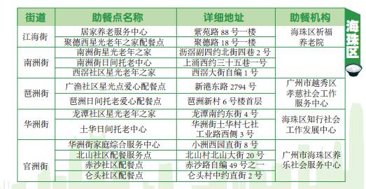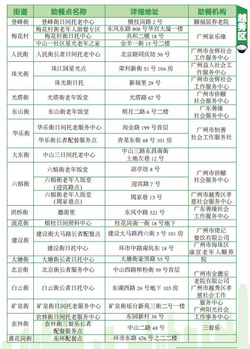 截至2017年7月底,广州已建成老年人配餐助餐点392个,社会化运营占比82.4%,覆盖全市137个街(镇)的81万老年人。越秀、海珠、黄埔、白云、南沙、番禺区相继实现助餐点街(镇)全覆盖。