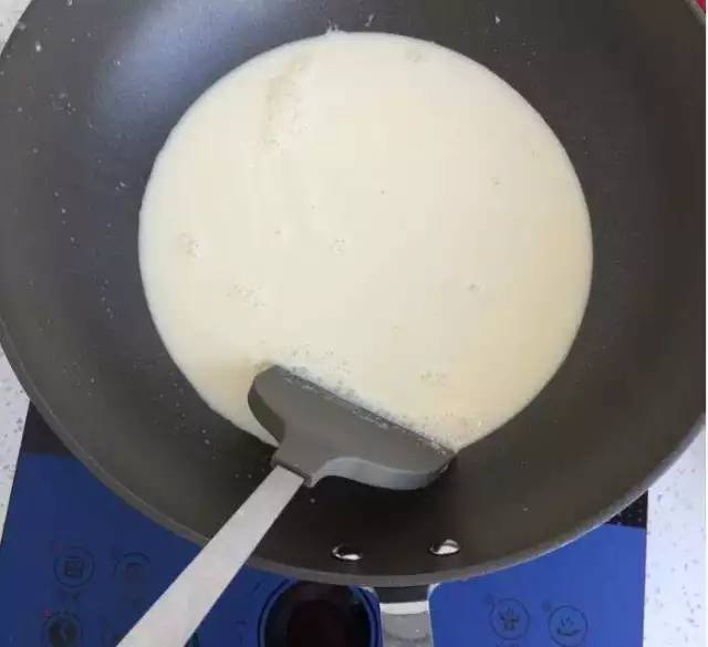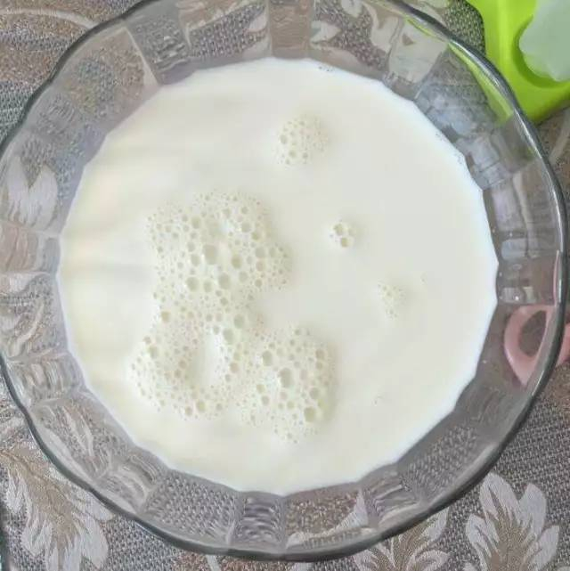 2、放锅里加热,一定要小火,奶冒泡就倒出来。