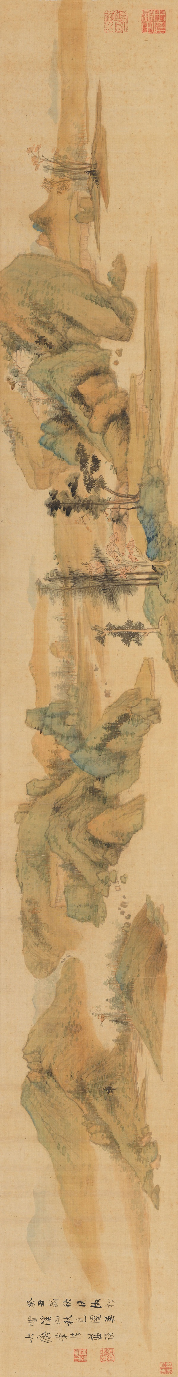 明 蓝瑛《溪山秋色图》卷 绢本设色 纵23.8 横180厘米 天津博物馆藏
