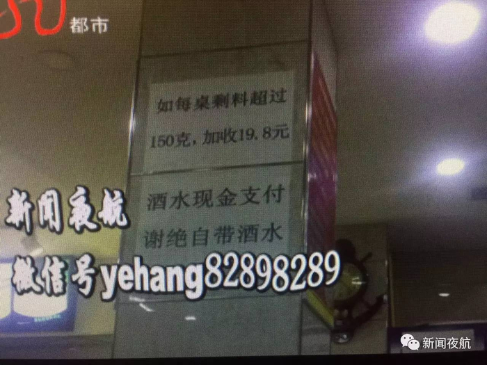 在这家店的墙上贴着提示牌,写着食品超过150克,10元押金将不予退还;每浪费150克,加收30元成本费。