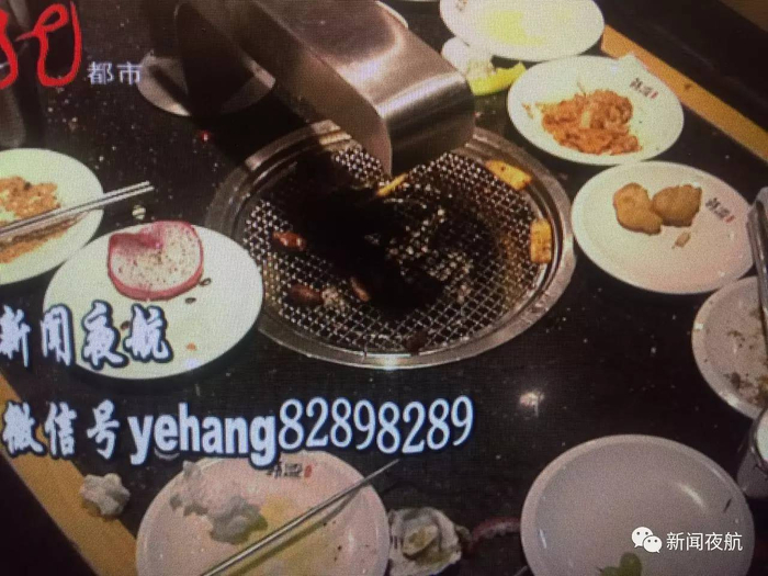 收拾餐桌的服务员说,几位顾客见肉品拿多后,并没有把东西退回去,而是直接全都放进了烤锅里,企图蒙混过关。