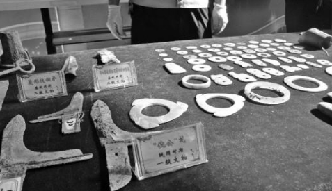 第二次和第三次则盗掘出青铜鉴、编钟、石磬、青铜壶等50余件珍贵文物。后经专家鉴定,此案所涉及的全部为春秋晚期文物,其中一级文物3件,二级文物5件,三级文物46件。
